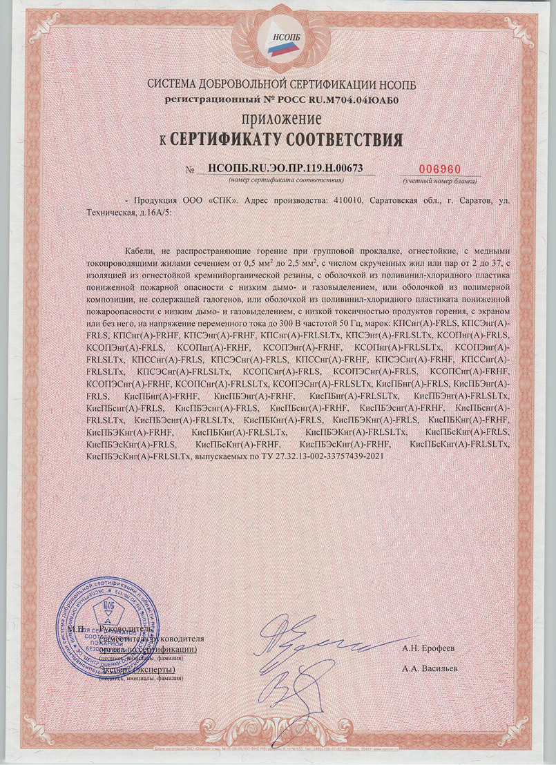 Кабель КисПБнг(А) обладает уникальными характеристиками в области пожарной безопасности, в конструкции добавлены элементы создающие дополнительную термостойкость. Если вы хотите заложить его в проект мы гарантированно можем защитить этот проект за вами, предоставив Вам эксклюзивные условия.