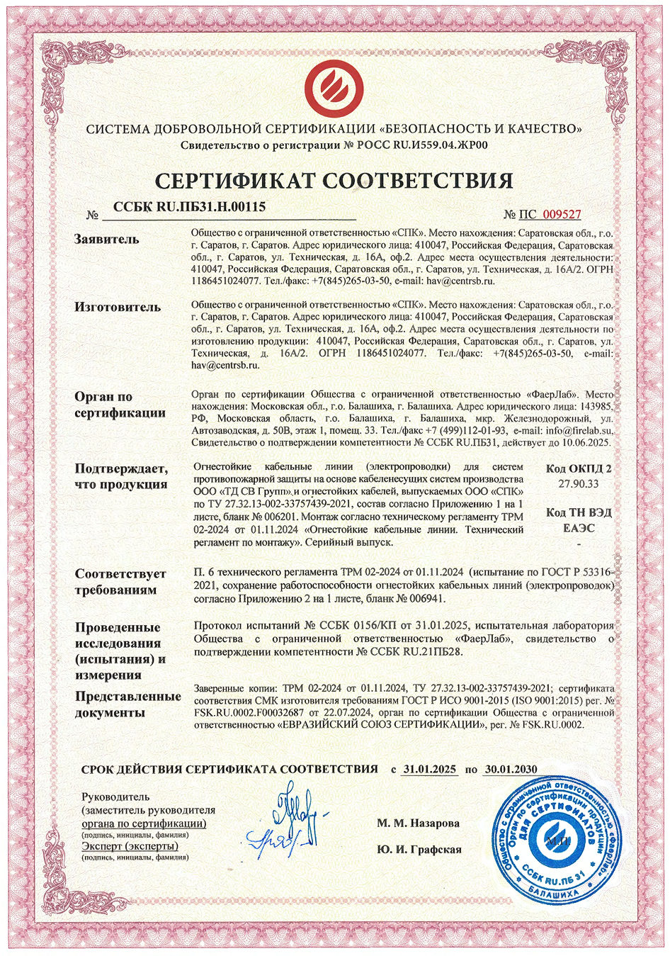 Завод «Ариадна» производит огнестойкие кабели для систем пожарной сигнализации с 2020 года.